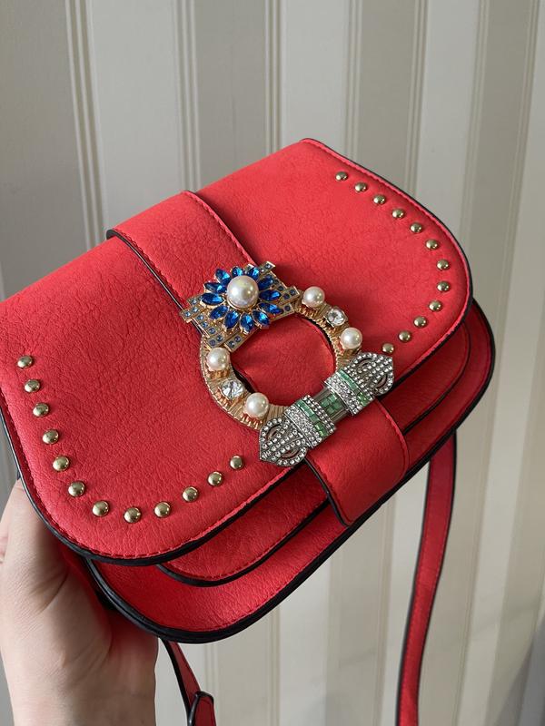 Сумочка новая совсем, купила очень давно, сейчас не полюбию камешки. Может кому-то надо для ребенка играть, или если просто нравятся такие украшения на сумках, руби за символическую цену. Она не была в использовании, подкладка идеальна. Ремень регулируется