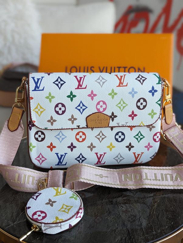 Multi Pochette 2 в 1 - Материал: текстиль эко-кожа, подкладка красная с нашитым логотипом. - Отлично держит форму. Имеет прочный каркас. - Брендированные карабины - Размер: 26 * 15 * 7см код: черный стеганный 20389-1 коричневый+кор.ремень 20389-2 коричневый+розовый ремень 20389-3 белый моногам 20389-4