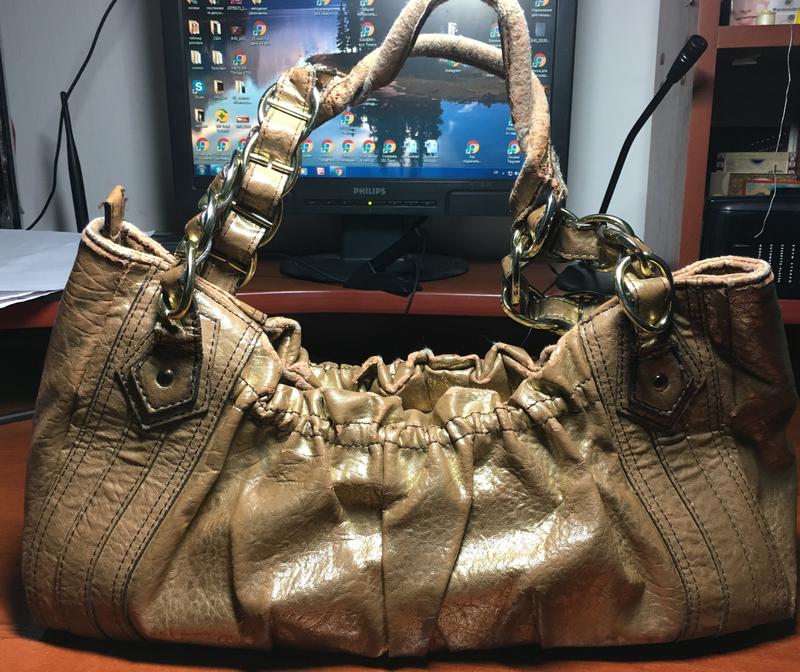 СТИЛЬНА Сумка з міцної еко-шкіри куплена в Канаді, без браків, але має деякі пошкоження (фото), має 3 внутрішні кишені та одну з них - на замку-блискавці, сумка також на блискавці, 38 х 20 см, ручки ВІД ВЕРХУ сумки- 50 см,- можна носити в руці та на плечі,