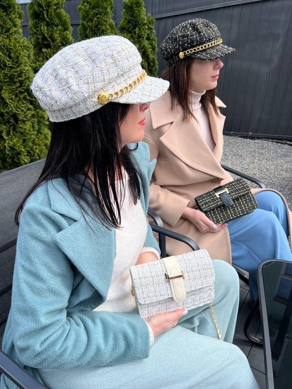 🖤Поєднання стилю та вишуканості 👜✨ Твідова кепі та тендітна сумочка стануть твоїми незамінними супутниками за чашкою кави в ресторані або під час прогулянки парком🌳 Разом комплект 550 грн