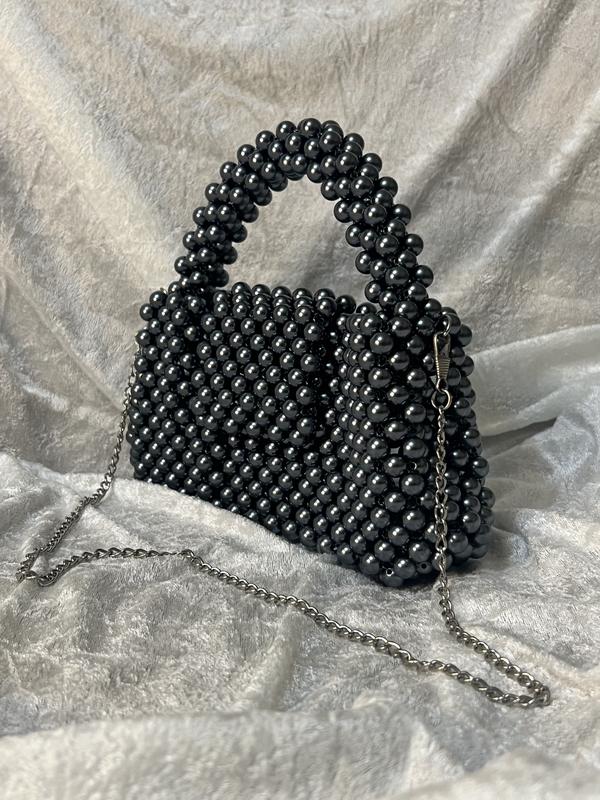 Сумка из бусин серая. Возможно исполнение в другом цвете и размере. Сумка идет в комлекте с цепочкой и мешочком для хранения.