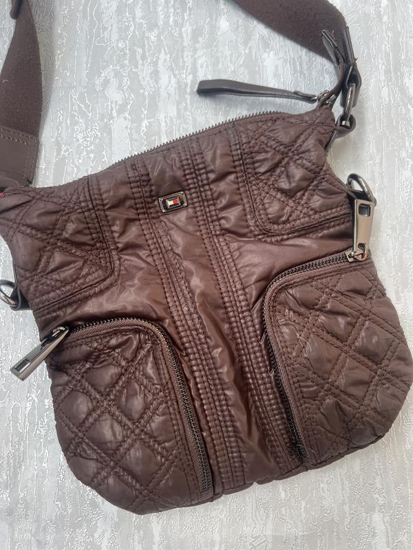 Плащевая коричневая сумка Tommy Hilfiger оригинал Размер 25х24см, Плечевой ремень 129 см регулируется Реальный цвет на 2 фото темный шоколад