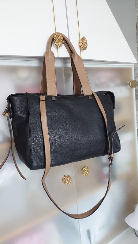 сумка хорошего качества, вместителька, имеет один отдел + кармашковые, плечевой ремень. в хорошем состоянии, есть незначительный нюанс - боковые части немного треснообразные, не по всей длине, в двух городах, пр и носке не видно, на фото показала, в цену учли.