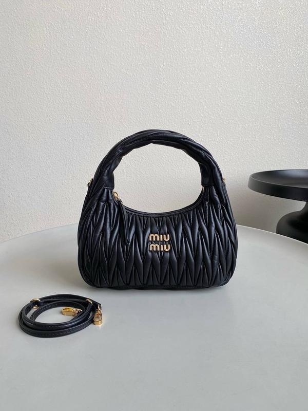 Сумка брендовая черная кожаная хобо миу люкс hobo