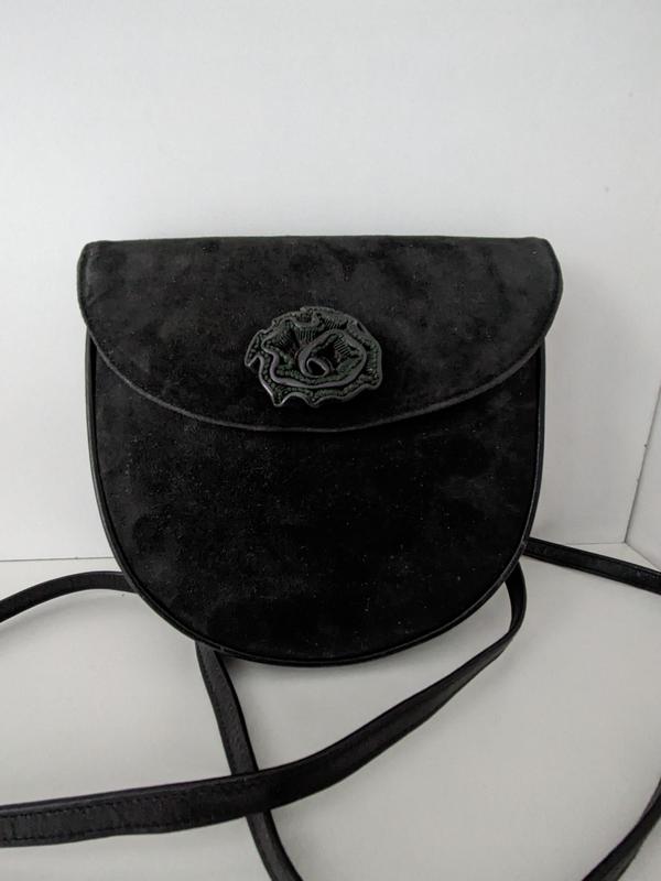 Интересная элегантная сумочка из натуральной замши из переда и кожа из зади. Высота 18, длина 19 дно 4. ремень 140.