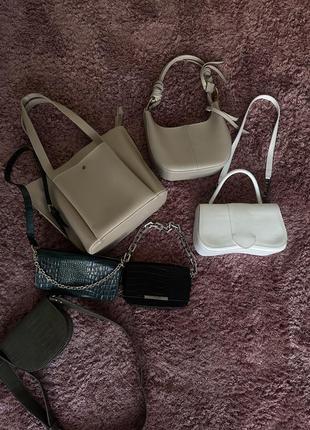 🤌 В наявності 6 різних сумочок 1. Маленька хакі через плече (ланцюжок регулюється) Стан: 5/5 Price: 399 UAN 2. Зелена з золотистим ланцюжком через плече Стан: 5/5 Price: 299 UAN 3. Чорна маленька сумояка із срібною ручкою-ланцюжком Стан: 4/5 (незначні потертості на срібній вставці) Price: 249 UAN 4. ПРОДАНА ❌ Біла сумочка через плече (плагіат форми під JW PEI) Стан: є незначний нюанс Price: 549 UAN 5. ПРОДАНА ❌ Беж сумочка- багет Стан: ідеал зовні, всередині підкладку треба підшити Price: 549 UAN 6. ПРОДАНА❌ Беж сумка-шопер формат А4 вміщає Стан: НОВА Price: 599 UAN 🛍️При купівлі більше однієї одиниці - ГАРАНТОВАНА ЗНИЖКА💌