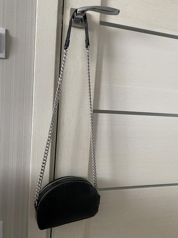 Сумочка кросс-боди Mango (кожам). Стан идеален, на цепочке, два отделения, мягкая перегородка. Длина 22 см. Высота по центру (по высоте точка, имеет срезанные углы) 16 см. Высота с боку 7 см. Ширина 5 см.