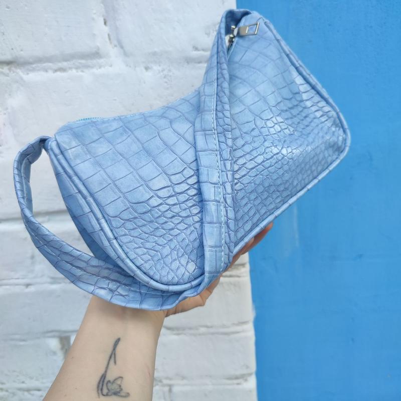 🔶️ Трендовая компактная сумочка Багет голубого цвета 🔶️ 🔸️ также в наличии: зеленые, абрикосовые, черные, коричневые, слоновая кость👌 🔸️ на подкладочке 🔸️ PU кожа с тиснением 🔸️ шир 22,5 × вис 12,5 см 🔸️ ручка 50 см