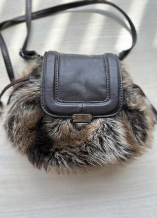 Оригінальна пухнаста маленька сумочка,яка виконана із штучного хутра. Чудово доповнить ваш зимовий образ. Закривається сумочка на застібку,а також з двох боків додатково затягується в мішечок. Сумочка маленька але вміщується в ній :мобільний телефон,ключі,гаманець та гребінець. Є лише один загальний відділ для зберігання речей. Сумка була придбана в Німеччині. Стан чудовий