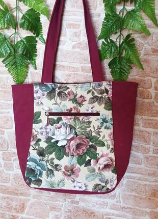 Дуже зручна сумка, зшита з джинсової та щільної інтер'єрної тканини.Розмір 42 см на 35 см,дно 12 см. Ручки 60 см-можна вільно носити на плечі. Закривається на блискавку. Зовні кишеня на блискавці, усередині 2 накладні кишені.