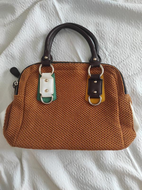 Сумка текстильна, дно і ручки кожзам, 25*33*16см якісний підклад всередині, багато відділень, стилізована під вінтаж, стан нової, із зауважень: тріщини на ручках по причині не користання (ручки можна замінити), придбавалась давно і не була у використанні, також невеличке затемнення на декорі , всі дефекти вказані на останніх фото