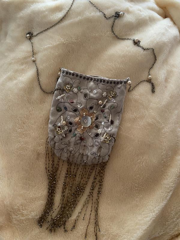 Сіра замшева сумочка із вишивкою бісером і паєтками