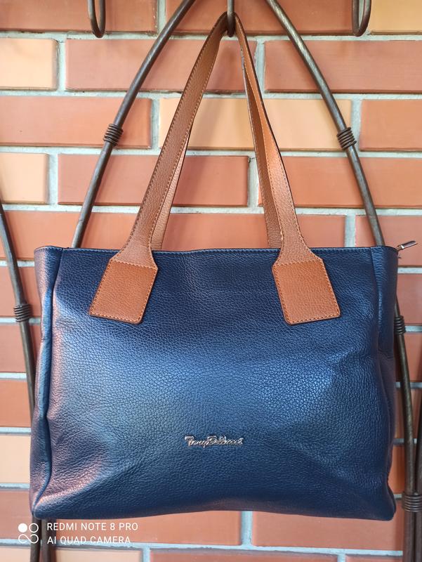 Сумка (не секонд)из плотной кожи,структурированная, очень вместительная, ручки тоже кожаные,...очень приятное сочетание цвета Высота -26 см Длина -43 см Ширина -13 см Внутри имеет два отделения, и карман карман на молнии Имеется нюанс,его можножно увидеть на последнем фото, поддерть по краям ручки...охованец может с этим справиться, тем более цена учтена