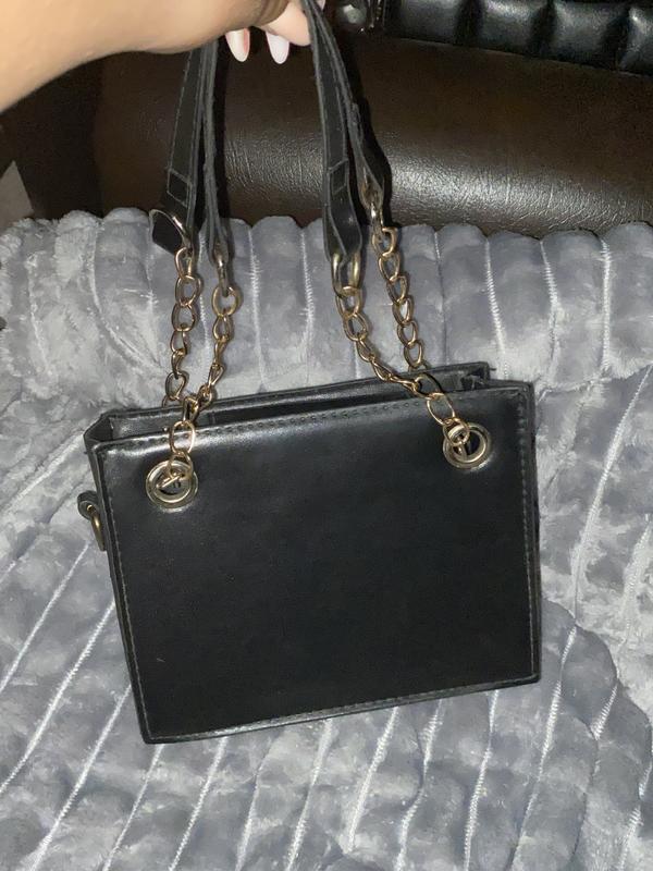 Классическая черная сумочка, почти не использовала, но есть дефект, пятно от чего-то, возможно можно оттереть, ( указанная на фото) длина ручек-18см, длина сумки -13см, ширина-18см