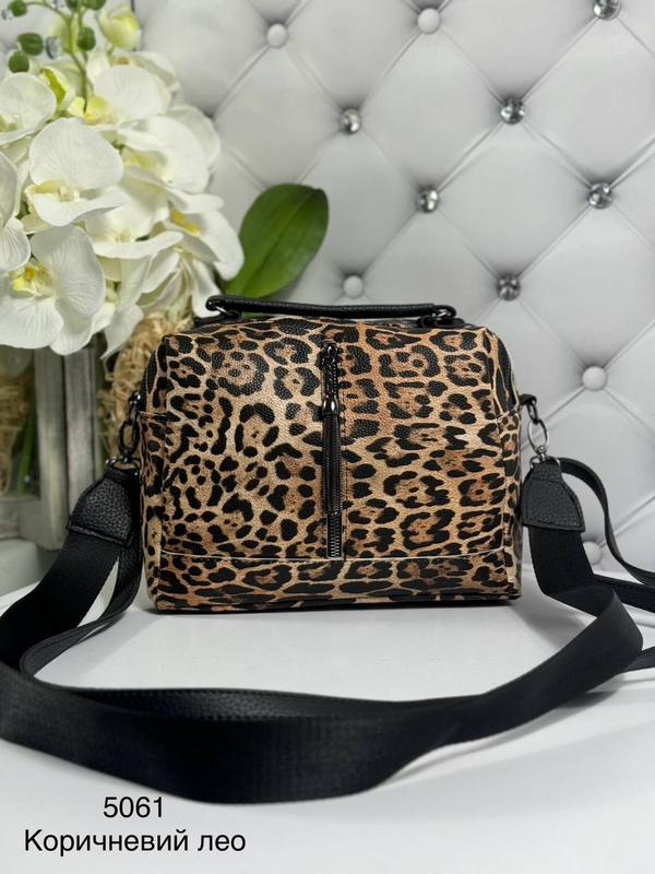 Наявність уточнюйте Сумка "чемоданчик" із принтом леопард Кольори: коричневий, сірий Матеріал: екошкіра леопардовий принт Розміри: 26x20x13см Два відділення на двох блискавках. Всередині кишеня на блискавці та кишеня відкрита. На фасаді відділення на блискавці. На звороті кишеня на блискавці. В комплекті два ремені: регульований екошкіра 135см та нерегульований текстиль 103см.