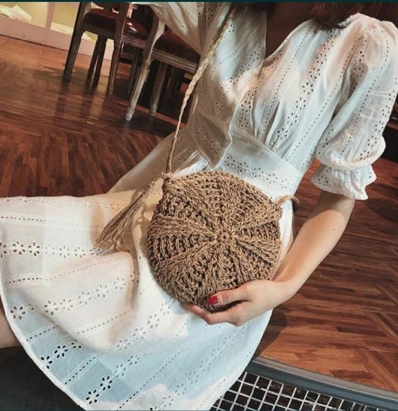 Сумочка круглая плетеная в коричневом цвете - 350 грн. Диаметр - 22 см. Довжина ручки- 120 см