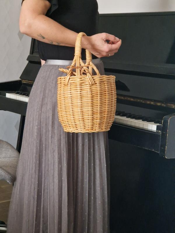 Сумочка, плетеная из бумажной лозы. высота 20 см, диаметр 20 см. может быть любого цвета и размера по вашему желанию. Под заказ.