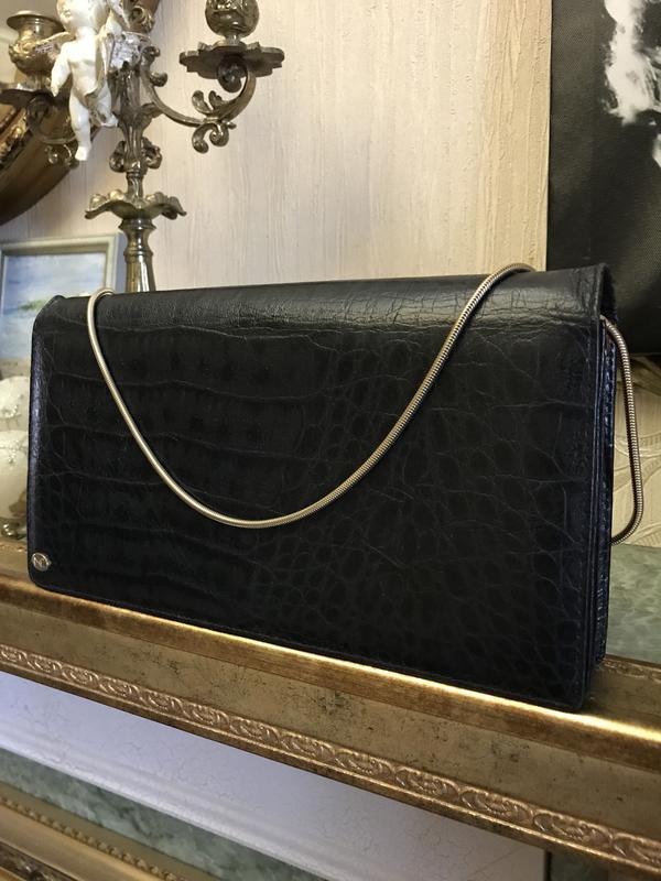Натуральна шкіра крокодила. На сумці присутня позначка MC, але подібну фірму в інтернеті не знайшли. Не плутайте зі шкірою каймана!!! Вона більш делікатна та приємна на дотик. Колір чорний. Стан майже ідеальний як для такої сумки. Єдине зауваження, по боках, з обох сторін, присутня деформація шкіри через натяжиння ланцюжка. Додаткова інформація за запитом.
