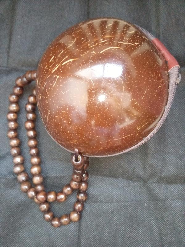 Сумка сувенир, натуральный кокос, подкладка, застегивается на молнию, диаметр 13-15 см. Можно торговаться