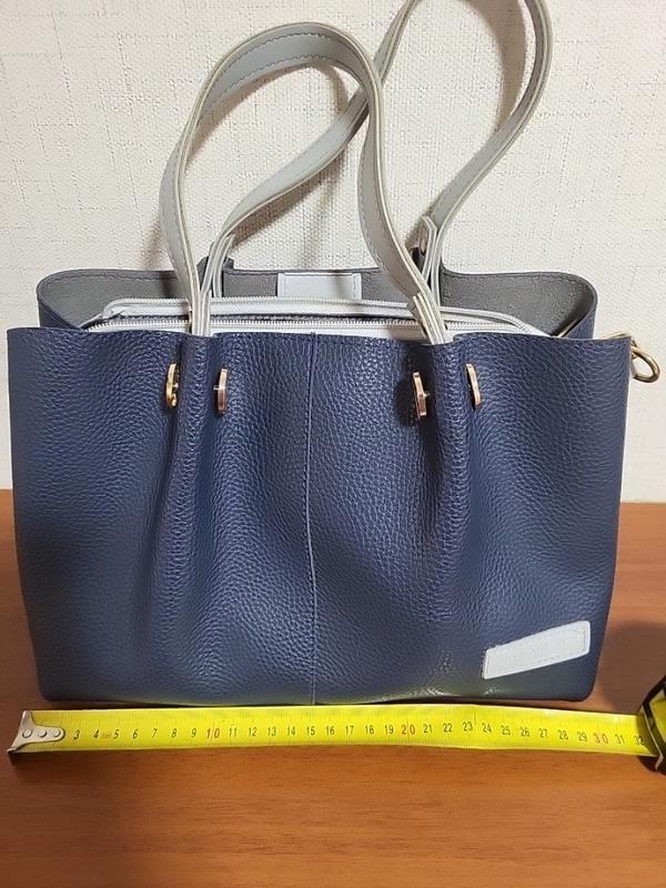 Женское содержимое сумка в идеальном состоянии. Три отдельных отделения. Крайные застегиваются на кнопку магнит, средний- на молнию.В среднем еще есть дополнительные два небольших кармана и один закрывающийся. Есть две короткие ручки и длинный ремешок. Фурнитура не тусклая. Размеры указанные на фото. Стан - супер!!!