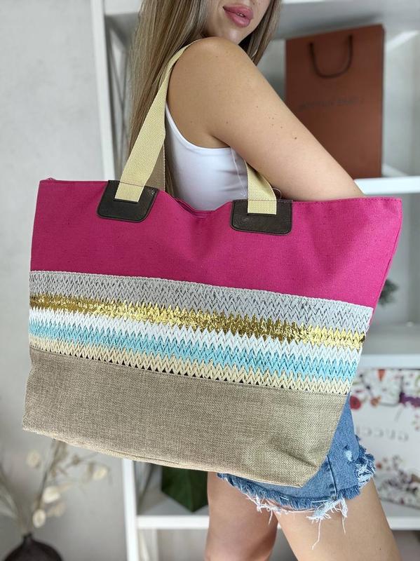 828878 Новинка❤️🔥 Сумка 2х сторонняя на молнии Материал: ткань лен с плетением На молнии ✅ Цвет: разноцветная Размер: 30/40