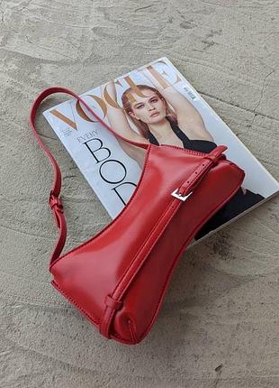 D0145 • Grace bag ❤️🔥 Наконец-то получили в этом невероятном цвете, очень эффектная и стильная сумочка багет небольшого размера, в стиле Jacquemus Le Bisou, с глянцевой поверхностью в красном цвете. В середине одно отделение на подкладке. • PU эко кожа; • Красный цвет; • Модель с 1 отделением, на подкладке; • Длина короткой цепочки - 40 см; • Пильник в комплекте ✔️ Размер: 27х11см Цена 990 грн