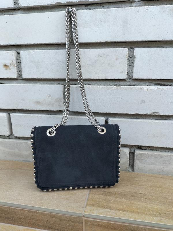 Фирменная замшевая сумочка кроссбоди на серебряной цепочке от известного испанского бренда Zara Woman! Оригинальный Изготовлена из 100% натуральной замши. Цвет: темно-синий. Размеры: 18 см/ 13см/ 5 см 100% натуральный замш. Состояние новой, без дефектов. Цена 800грн