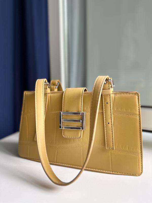 Сумочка багет яркого цвета ́охра. Очень легкая, закрывается на молнию внутри и декоративный замок. Можно отправить дополнительные фото, если надо. По размеру: 27х15х8