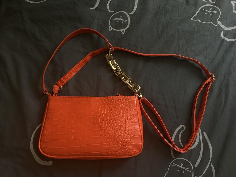 сумка бренду Primark у гарному холодному оранжевому кольорі. дві ручки, довжина короткої 50см, довгої 126см (максимум, регулюється до 67см) висота 16, ширина 26, бік 5, глибина 12. стан чудовий, є 2 непомітні чорні полоски (останнє фото)