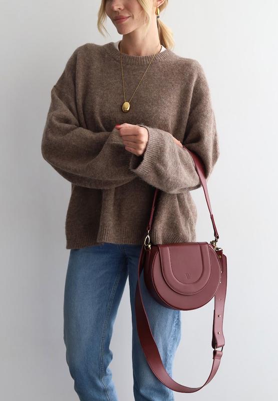 Сумка женская кожаная полукруглая марсала mandy