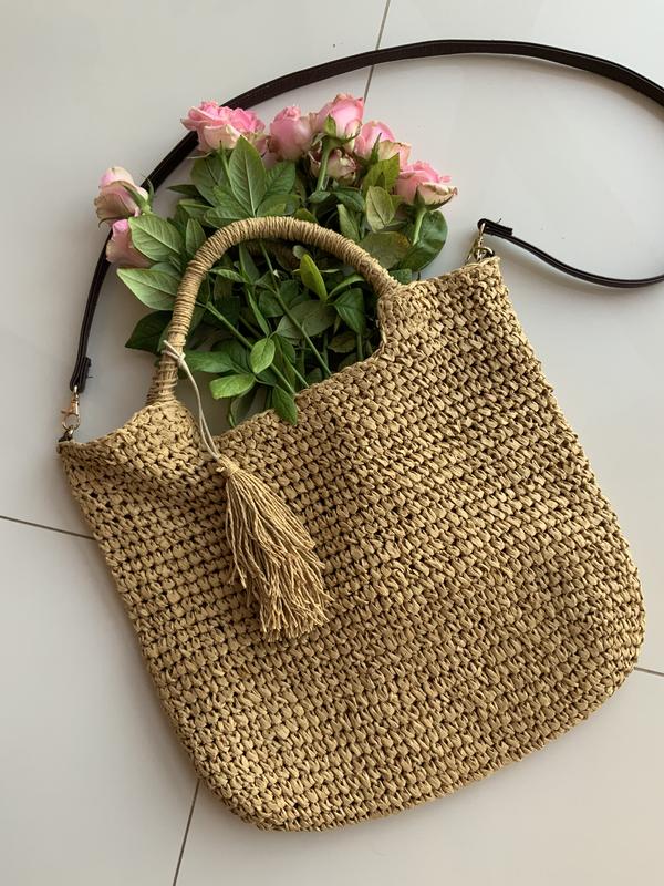 Плетена літня вмістка соломʼяна сумка на пляж на відпочинок
