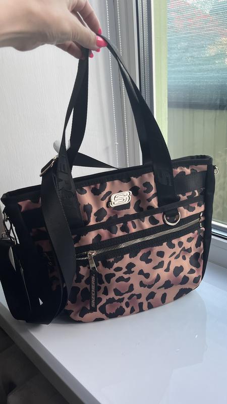 Нова зручна і стильна сумка від Skechers. З бірками. Не сток. Розмір 33х23см. Заокруглена донизу. Насичений леопардовий принт. Підійде як для повсякденного луку, так і для спортзалу. На підкладці, всередині кишеня маленька і ззовні велика на блискавці. 2 короткі ручки і 1 регульована для носіння на/через плече.