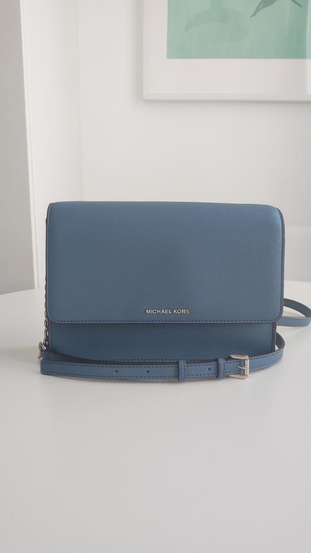 Продам сумочку Michael Kors оригинал. Стан идеален, одевалась несколько раз. Есть на кирпиче небольшие потертости (незаметные) Цвет – деним Натуральная кожа - saffiano. Сумка на замочке-магните Размер 24,1 см Ширина / 16,5 см Высота / 6,4 см Глубина Регулируемый ремень: 52,1 см - 62,2 см Имеется накладной карман снаружи, внутри 3 больших отдела - один из них на замке. В одном из отделов - карман под карты. Длинный ремешок регулируется. Дополнительные фото и видео могу отправить если надо. Отправка по безопасному обмену, по предоплате или личная встреча (Софиевская Борщагка) Без торгу!