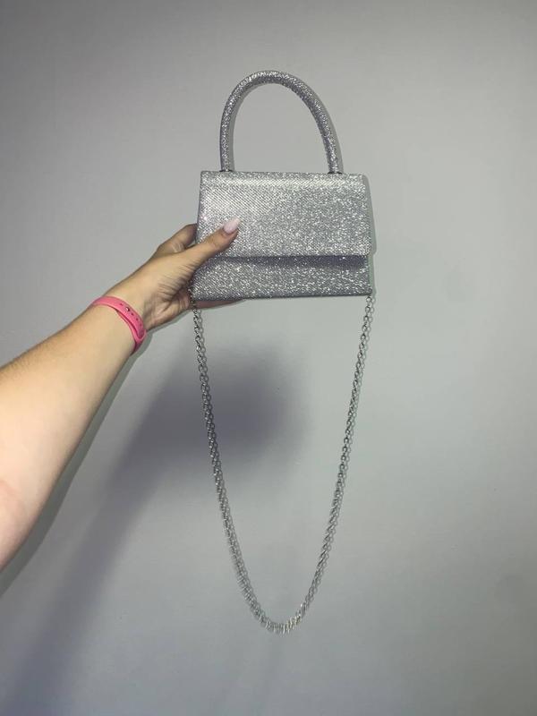 знову у наявності Сумочка Код 610 Колір : срібний 🖤 Матеріал: текстиль с блестками Висота без ручки 14 см довжина 20 см