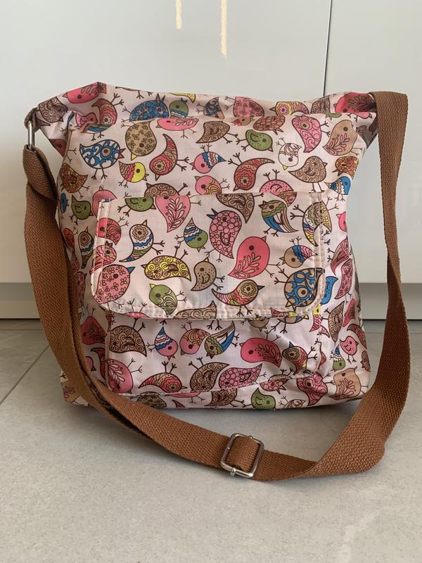 Сумка для мамочки на прогулку с малышкой, очень содержимое, красивый принт птички, цвет беж