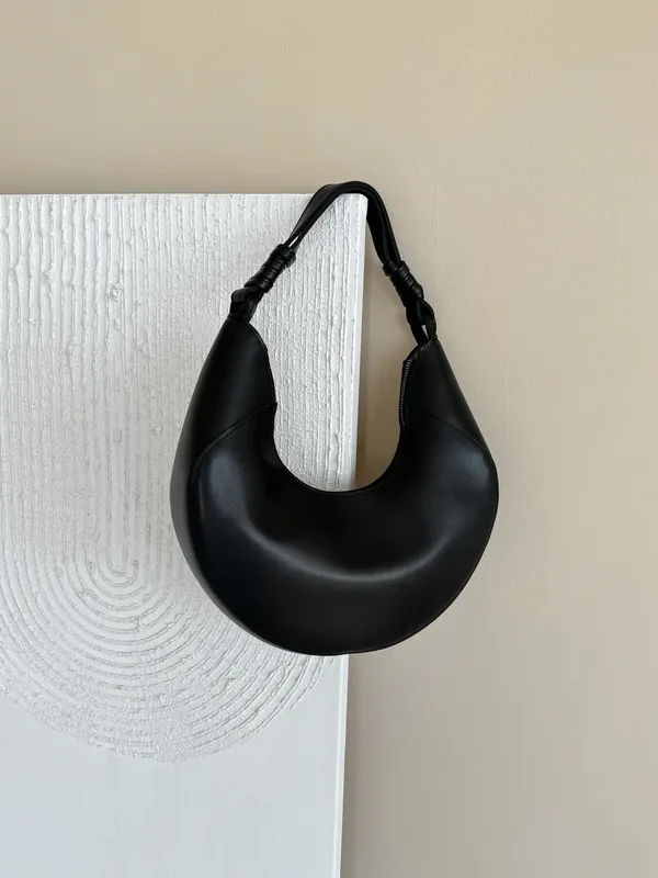 Полукруглая сумка из качественной эко-кожи черного цвета. Внутри отделение, тканевая подкладка и карманы. Застегивается молнией. Хорошо держит форму. Производство - Украина. Размер: Длина 29 см Ширина 7 см Высота 27 см