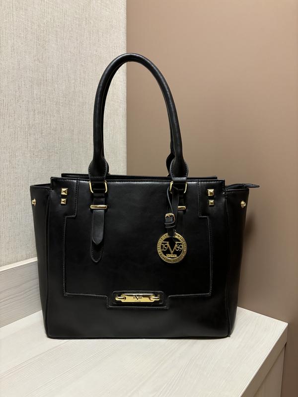 Versace сумка. Стан идеальный, незаметные следы использования. Сумка классическая, солидная. Материал - поливинил. Размер: 37* 26* дно 13,5см. Сверху кнопка, которая увеличивает объем. Внутри есть одно отделение, боковой карман. Застежка - молния. Ручка от краев длиной 48см. Высота над уровнем сумки 20см