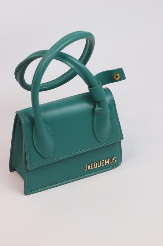 Le Chiquito Noeud green Арт: 0102 Размер: 20х15x9 Материал: эко кожа Цвет фурнитуры: золото Мини сумка Жакмюс выполнена из качественной, приятной на ощупь эко кожи. Прикрашена металевим, золотим логотипом Jacquemus. В сумке одно основное отделение, есть боковой открытый кармашек и имеет нашивку из эко кожи с надписью бренда. Подкладка текстильная. Ручка - круглая, изогнутая. В комплекте сменный плечевой ремень из эко кожи. Упаковка: брендовая коробка, наполнитель, бумага.