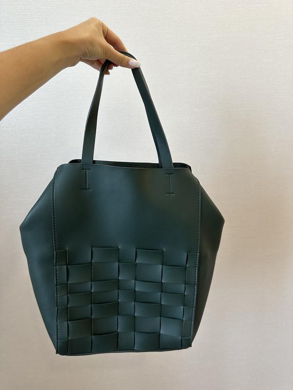 Сумка бренда Parfois в красивом изумрудном цвете. Без дефектов. Очень вместительная. В середине есть мешочек прикрепленный к сумке, застегивается на молнию.