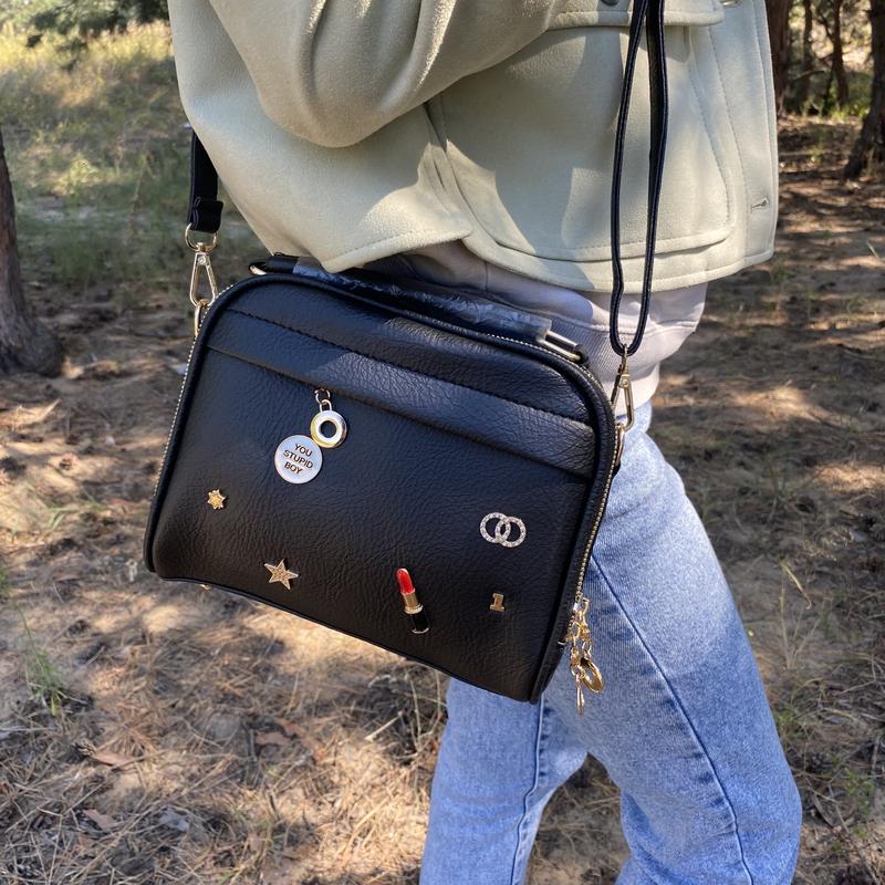 616 ручная и модная повседневная женская сумочка идеально подойдет для того, чтобы Вы могли освободить карманы и сложить все в одну сумочку. Характеристики Материал: Эко кожа (средней жесткости, хорошо держит форму); Длина: 23 см; Высота: 19 см; Ширина за основою: 11 см; Длина плечевого ремня: 120 см (регулируется в меньшую сторону);