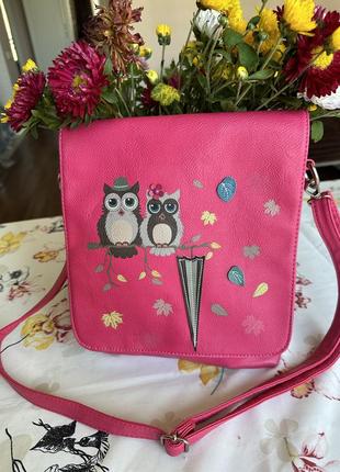 Сумка-планшет розовая совами