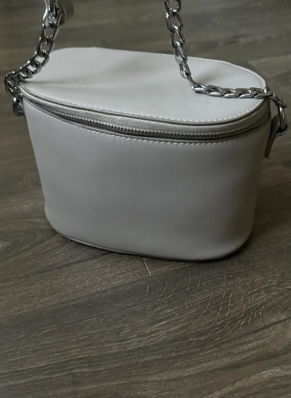 Женская сумка через плечо из искусственной кожи в серо-бежевом цвете. Размеры 20х12х12 см