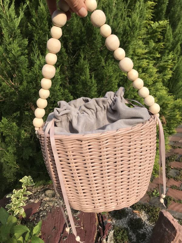 Сумка ручноі роботи з крафтовоі лози. Міцна, вологостійка, покрита високоякісним акриловим лаком без запаху. Довжина верхньої частини 23 см, ширина 16 см; висота плетеної частини 16 см.