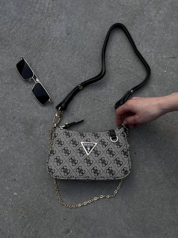 Брендова сумка Guess Mini Bag Silver Цена: 1250 грн Размер: 20 х 13 х 5 см Материал: эко кожа Описание: Люкс качество! Сумка изготовлена из эко кожи, на которой вдавлен монограммный принт бренда. Спереди расположен логотип. Внутри имеет одно сплошное отделение с текстильной брендовой подкладкой. К сумке можно подключить карабинами два ремешка. Один кожаный - 70 см. Вторая металлическая цепочка - 55 см Комплект: брендовая коробка + упаковочная бумага. _____ 0151
