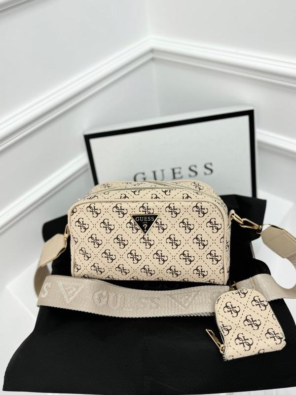 Имеет два независимых основных отделения на молнии. На широком ремешке расположена монетница, которую можно отстегнуть. Внутри есть подкладка. фурнитура брендируется, золото. Материал: Эко кожа. Размер: 22 см в ширину по дну. 13 см. высота. 8 см глубина. Без брендовой упаковки.