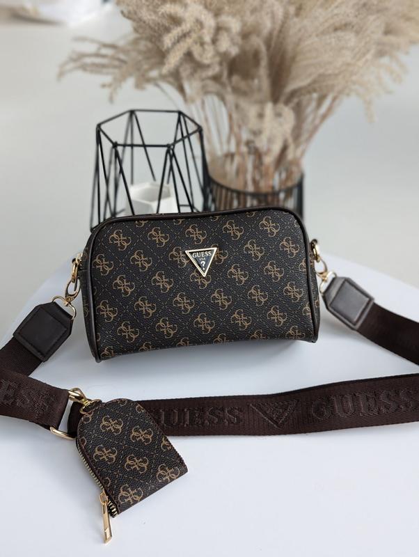 Имеет два независимых основных отделения на молнии. На широком ремешке расположена монетница, которую можно отстегнуть. Внутри есть подкладка. фурнитура брендируется, золото. Материал: Эко кожа. Размер: 22 см в ширину по дну. 13 см. высота. 8 см глубина. Без брендовой упаковки.