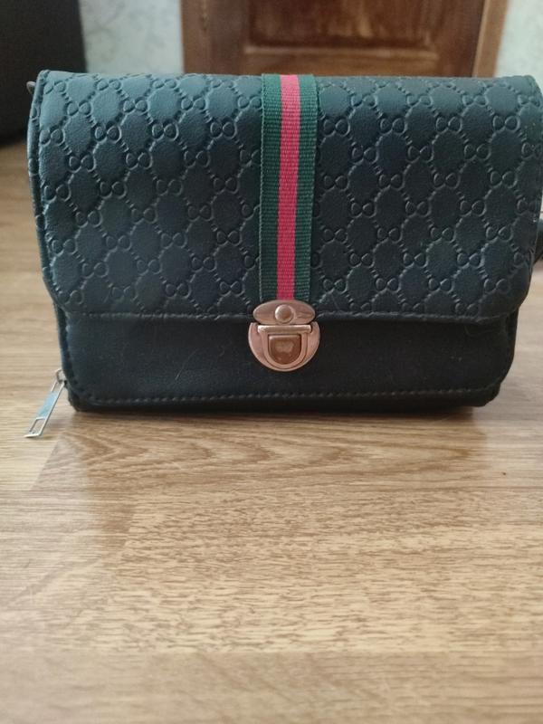 маленькая сумочка,застегивается на замок,внутри два отдела застегивающихся на молнию,ремень длинный съемный Длина -20 см,вымога 14 см, глубина6 см