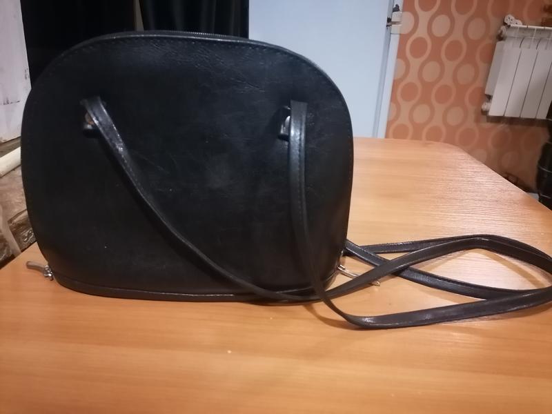 Черная сумка, которая держит форму. И очень хорошем состоянии. Карман один, сжатый, на молнии. Можно носить и на плече и через плечо.