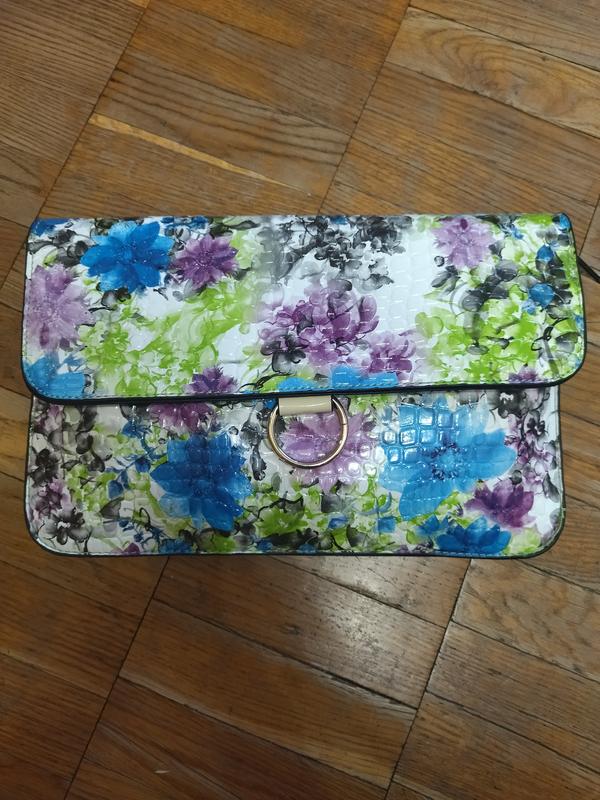 Новая женская сумочка.Яркий цвет.Застежка магнит, в середине еще молния.На два отделения+ Кошечки.В комплекте два рамешка (длинный и короткий).Размер 17/27.