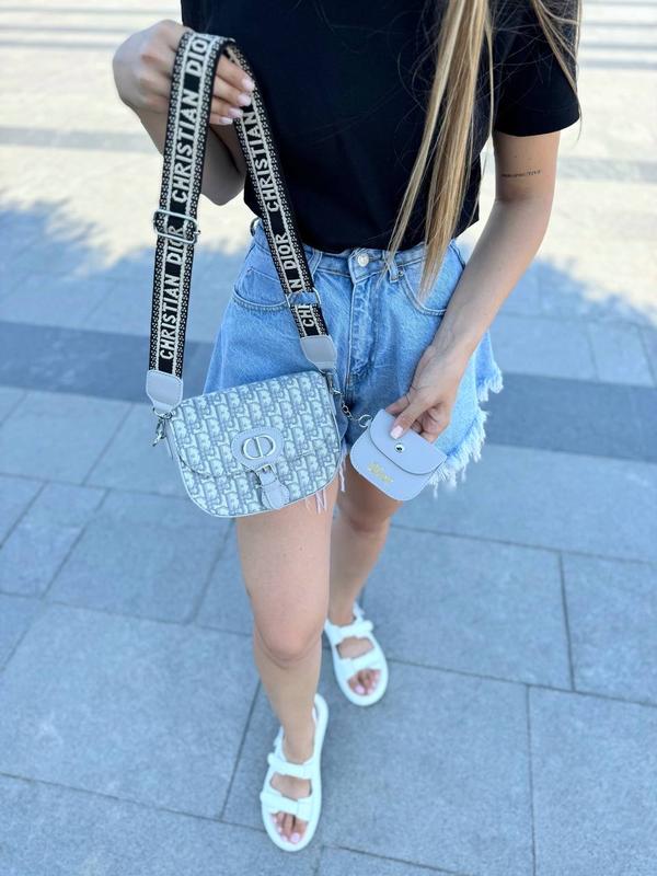 828901 Новинка❤️🔥 Сумка Диор полукруглая Цвет: серый; черный Размер: 21/15 ремешок с лого регулируется В комплекті: Материал: комбинированный твид и экокожа
